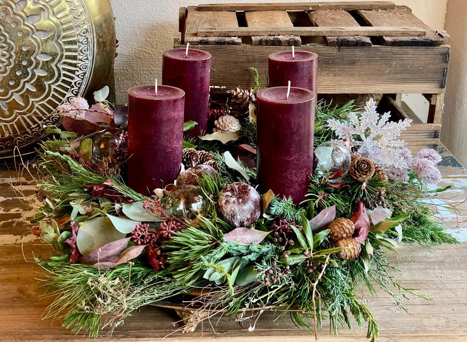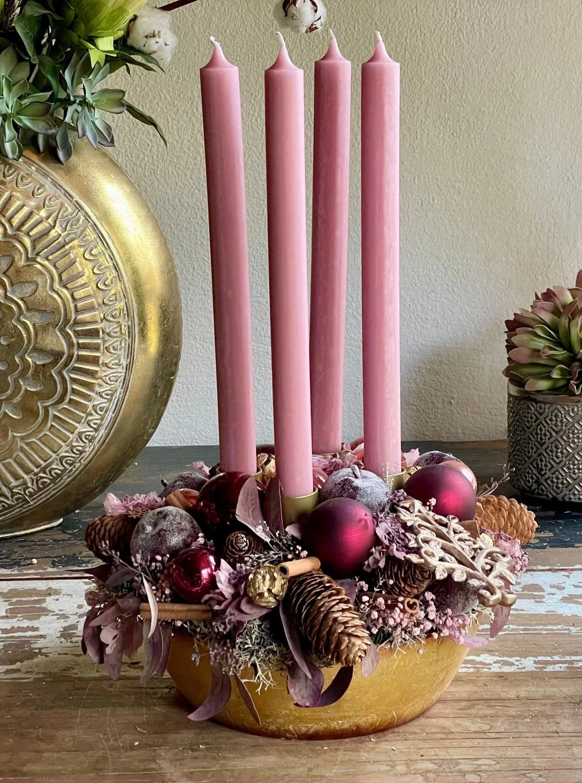Mit dem Advent beginnt die besinnliche Zeit in der wir es uns zu Hause bei Kerzenschein gemütlich machen. Dazu gehört sicher der individuell gefertigte Adventskranz oder ein stimmungsvolles Gesteck.