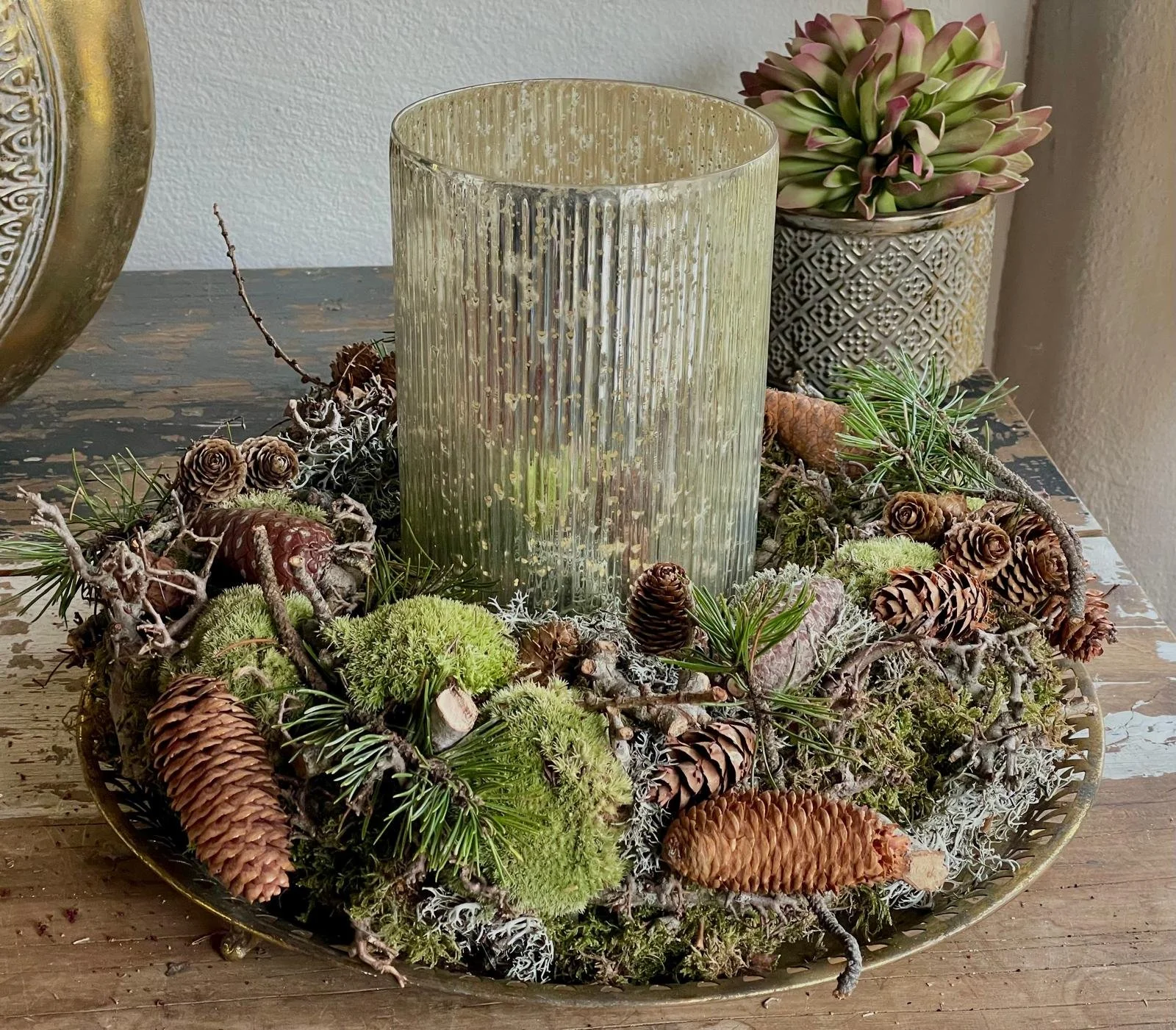 Getrocknete Blüten, Wurzeln, Holz und viele andere Materialien aus der Natur, kombiniert mit hochwertigen, täuschend echten Seidenblumen werden in dazu passende Gefäße arrangiert.